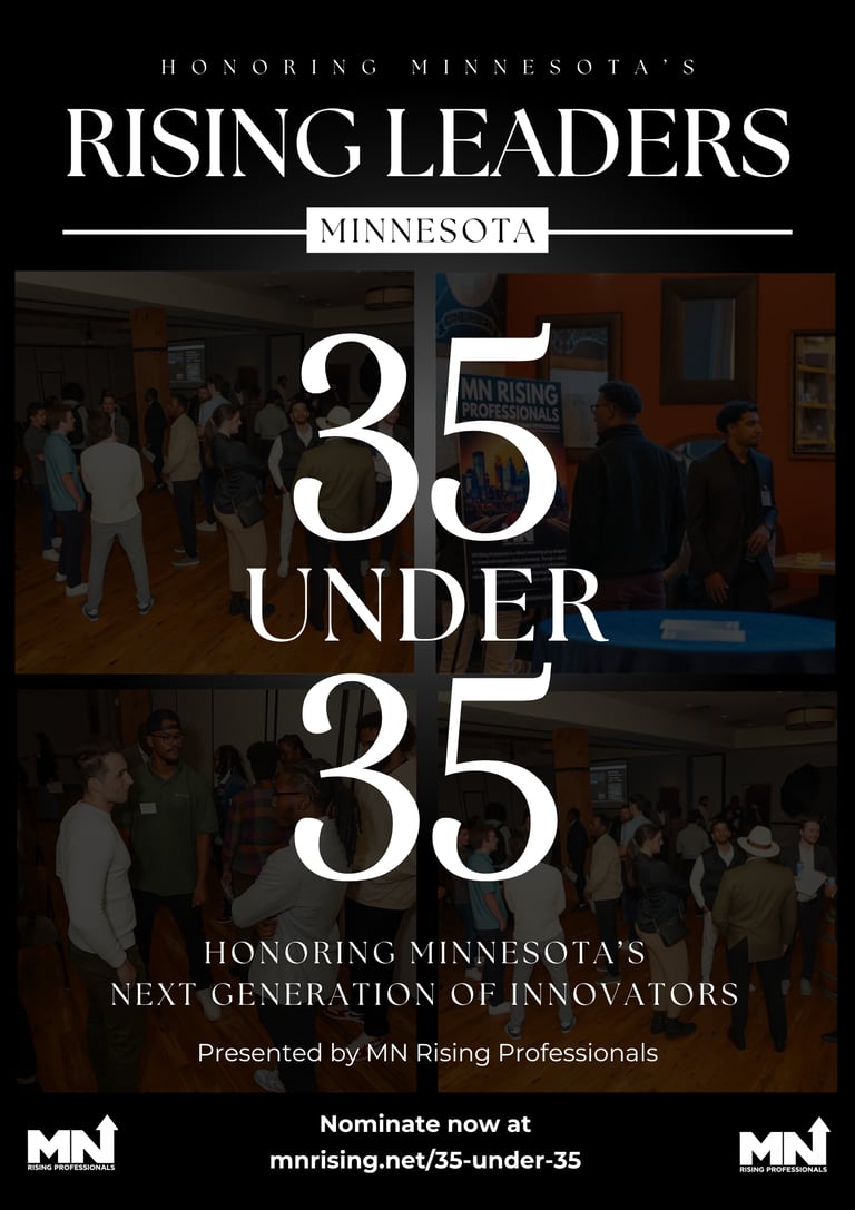 The MN Rising Professionals 35 Under 35 recognizes exceptional young professionals and entrepreneurs from all industries who are making meaningful community impacts, driving innovation, and exemplifying leadership and dedication as they shape the future of Minnesota and beyond.