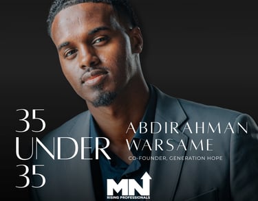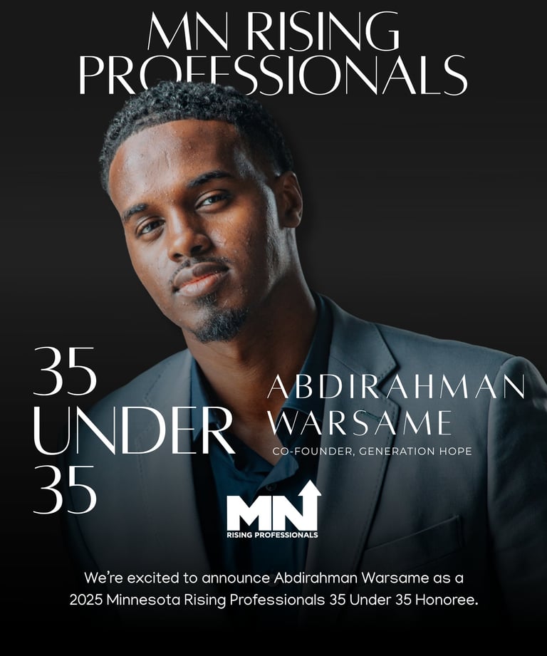Abdirahman Warsame is a Minneapolis-based activist, public speaker, author, and nonprofit founder dedicated to addressing addiction and recovery in the East African community. He co-founded Generation Hope at age 21 and is a published author and filmmaker.
