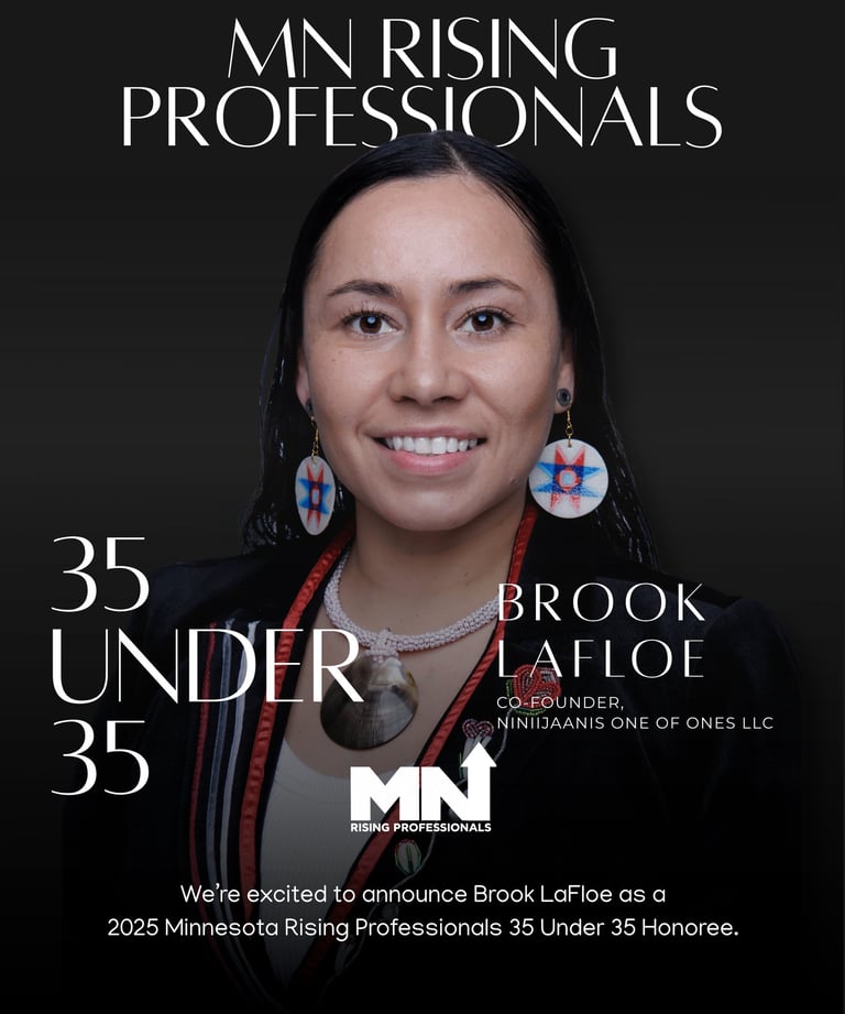Brook LaFloe, from the Turtle Mountain Band of Chippewa, is an educator, entrepreneur, and cultural leader raised in the Twin Cities. She is the co-founder of Niniijaanis One of Ones, a social enterprise dedicated to uplifting Indigenous children through culturally rooted education and creative expression. With nearly a decade of experience developing culturally relevant curriculum, Brook combines her academic background in neuroscience, anthropology, and Montessori education with a passion for revitalizing Indigenous culture and supporting local artists and economies. Beyond the classroom, she is a dedicated basketball coach and mentor, recently recognized as the 2025 Minnesota Class AAA Section 3 Assistant Coach of the Year.