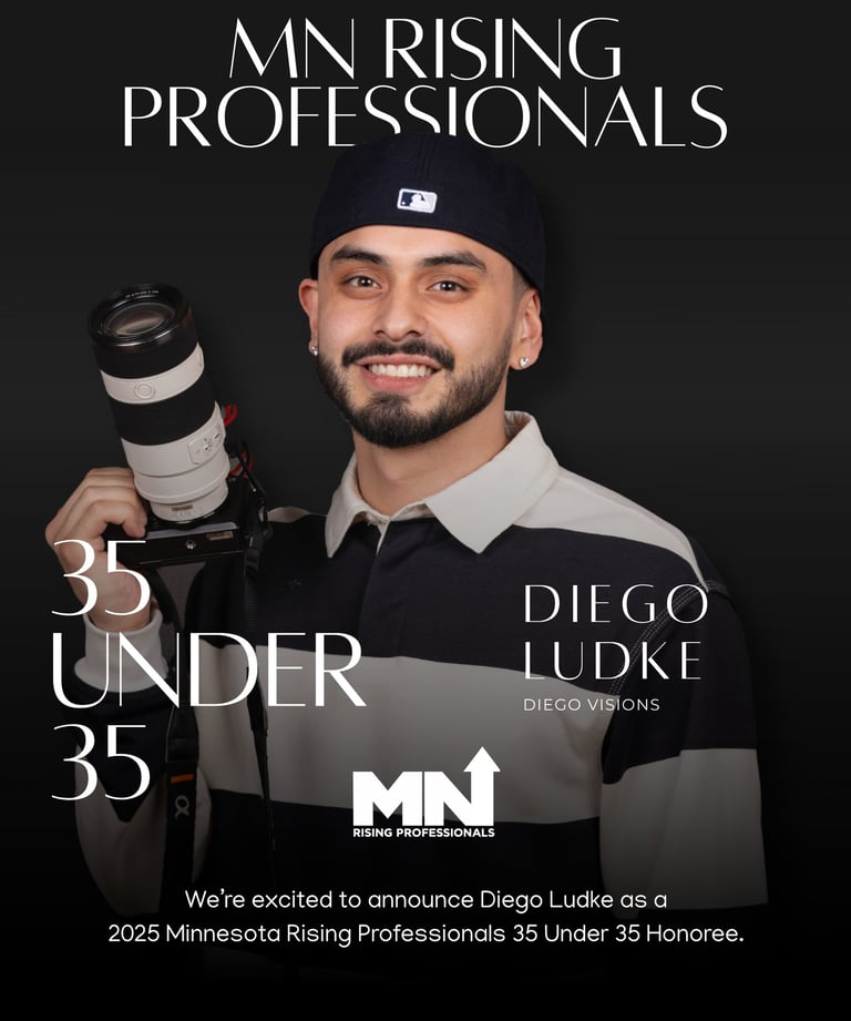 Diego is the founder of Diegovisions and a talented freelance videographer whose work has had a powerful impact on young people across the Twin Cities. Through high-quality highlight reels, recruitment videos, and exposure opportunities, he has helped countless inner-city high school athletes gain college scholarships and access life-changing opportunities. Beyond his technical skill, Diego’s dedication to mentoring and supporting youth reflects his commitment to leadership, community impact, and empowering the next generation.