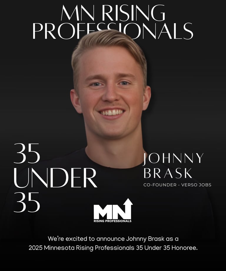 Johnny is the co-founder of Verso Jobs, an innovative career platform that uses data-driven and community-focused solutions to connect professionals with meaningful employment opportunities. By leveraging technology to match job seekers with roles that align with their skills and goals, Verso Jobs helps individuals and employers find the right fit more efficiently and effectively. Through his leadership and vision, Johnny empowers people to advance their careers, simplifies the job search experience, and strengthens workforce connections across industries. His work exemplifies the impact, mentorship, and commitment to opportunity that the Minnesota Rising Professionals 35 Under 35 initiative celebrates.