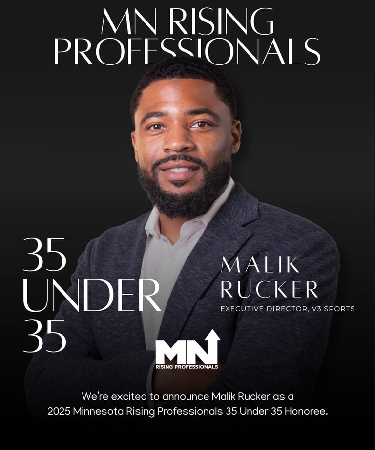 Malik Rucker is a community-rooted leader and the founding Executive Director of V3 Sports, a nonprofit in North Minneapolis dedicated to wellness, fitness, and education. A fifth-generation Northsider, Malik has grown V3 Sports from a single-person operation to a team of over 80, leading a $26 million capital campaign to create the V3 Center, a state-of-the-art health and wellness facility that invests in local businesses and partnerships. Under his visionary leadership, the center continues to expand with Phase Two projects including Olympic pools, multipurpose courts, and STEAM learning labs. Recognized among Twin Cities Business Magazine’s Top 100 and the Minneapolis-St. Paul Business Journal’s 50 Black Leaders to Know, Malik’s work exemplifies community-driven development, economic empowerment, and transformational leadership.