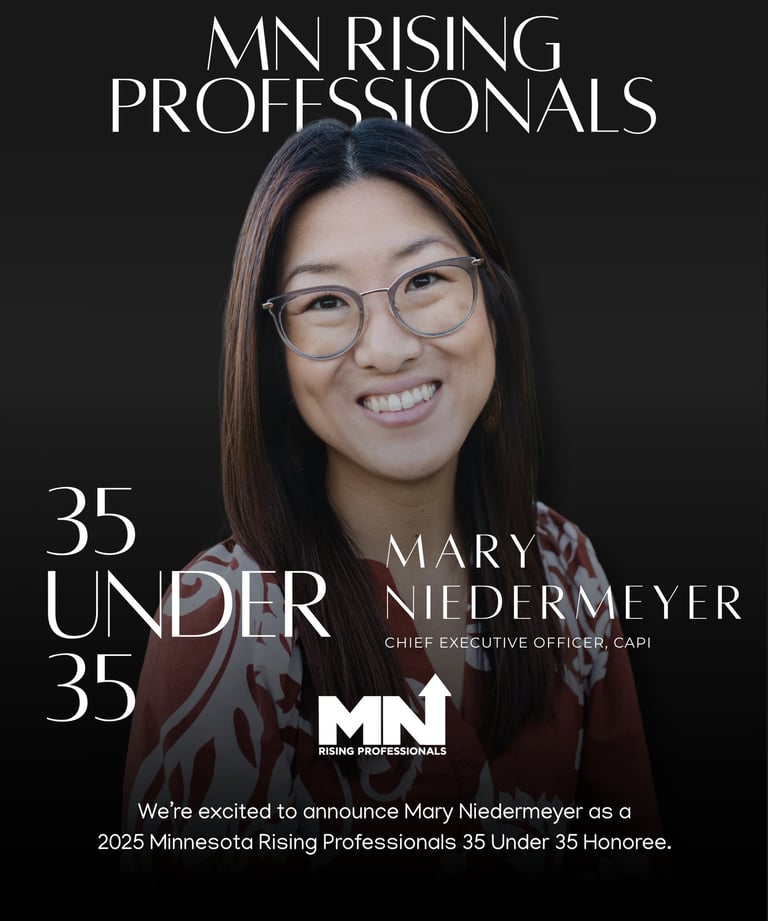 Mary J. Niedermeyer is a nonprofit executive dedicated to equity, innovation, and community-centered leadership. As CEO of CAPI USA, she leads strategic growth, organizational culture, and a multimillion-dollar capital campaign supporting underserved communities. Named a 2025 Notable BIPOC Executive by Twin Cities Business, Mary serves on the Governor’s Workforce Development Board and the Minnesota Leadership Council on Aging.
